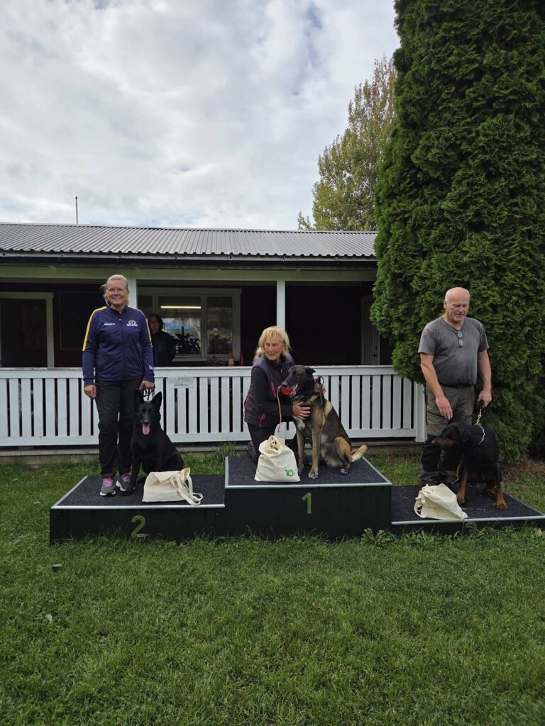 Här kommer bild från prispallen i IGP III. Ett stort Grattis till vårt hemmaekipage Sandra Jarl med Blackneck´s C Úno som tog sitt tredje cert och blev Brukschampion!